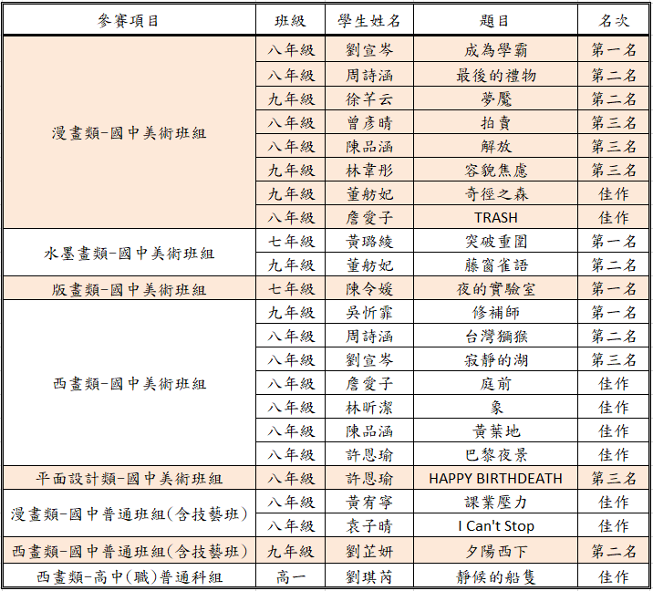 狂賀!!本校學生參加114學年度新北市學生美術比賽,榮獲佳績!